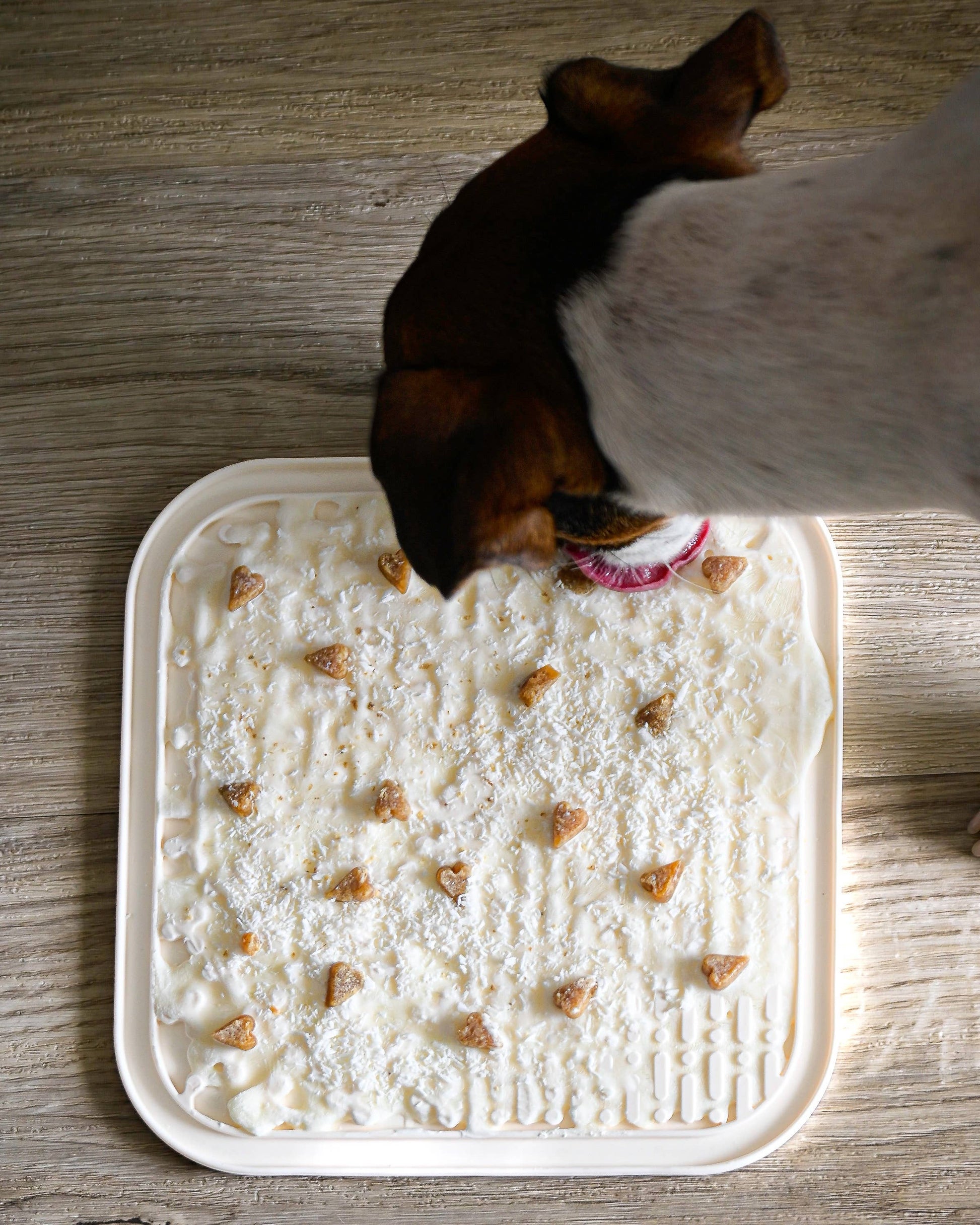 De Basic Likmat is een eenvoudig maar super effectief hulpmiddel om je hond of kat mentaal te stimuleren én rustiger te laten eten. Vul hem met natvoer, pindakaas of vloeibare snacks zoals onze meaty pouches – en jouw huisdier is voor een tijdje heerlijk zoet!