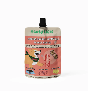 Geef je hond een heerlijke én gezonde traktatie met Meaty Licks Smokey Bacon Pindakaas– een premiumreeks smeerbare pindakaas met een onweerstaanbare rooksmaak, speciaal ontwikkeld voor honden. Deze knijptubes zijn vegan, glutenvrij en vrij van kunstmatige toevoegingen.