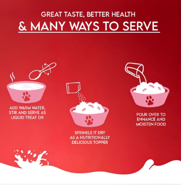 Multifunctioneel – geef het als drankje, giet het over de brokken of vries het in als zomerse ijs-traktatie.