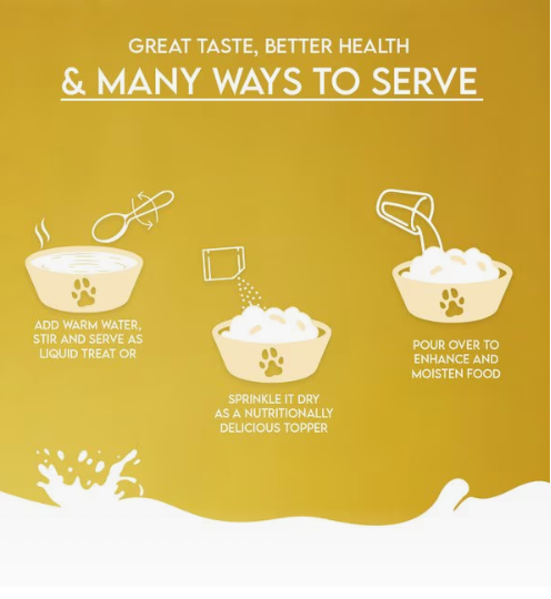 Multifunctioneel – geef het als drankje, giet het over de brokken of vries het in als zomerse ijs-traktatie.